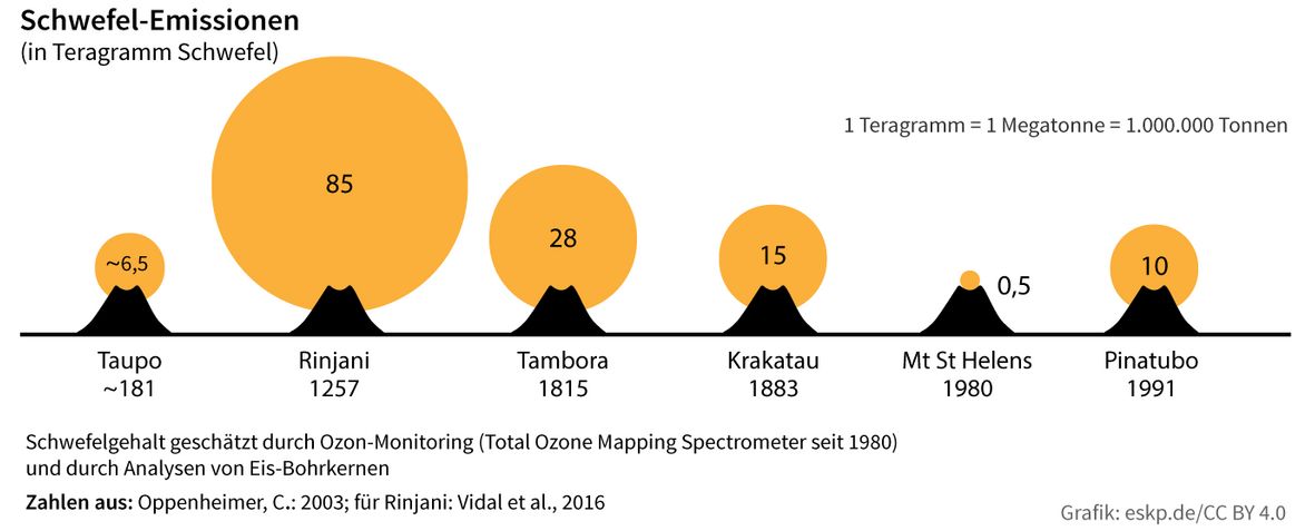 aktuell18:51, 4. Jan. 2026Vorschaubild der Version vom 18:51, 4. Jan. 20261.181 × 477 (55 KB)Dieter Kasang (Diskussion | Beiträge)== Beschreibung == Historische Vulkanausbrüche mit Angaben zu den Schwefel-Emissionen ==Lizenzhinweis== {| style="border:1px solid #8888aa; background-color:#f7f8ff;padding:5px;font-size:95%;" | Quelle: Wagner, S. (2020): Vulkanismus und Klima in der Vergangenheit: Was lässt sich für die Zukunft lernen? In: Jorzik, O., J. Kandarr, P. Klinghammer & D. Spreen (Hrsg.), ESKP-Themenspezial Vulkanismus und Gesellschaft. Zwischen Risiko, Vorsorge und Faszination, https://themenspezial.eskp.de/vulkanis…