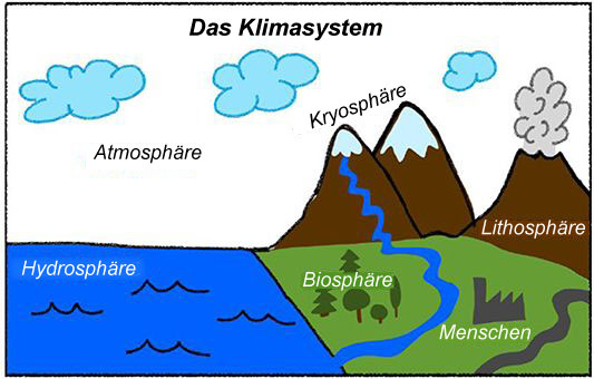 Das Klimasystem und seine Subsysteme: Atmosphäre, Hydrosphäre, Kryosphäre und Lithosphäre