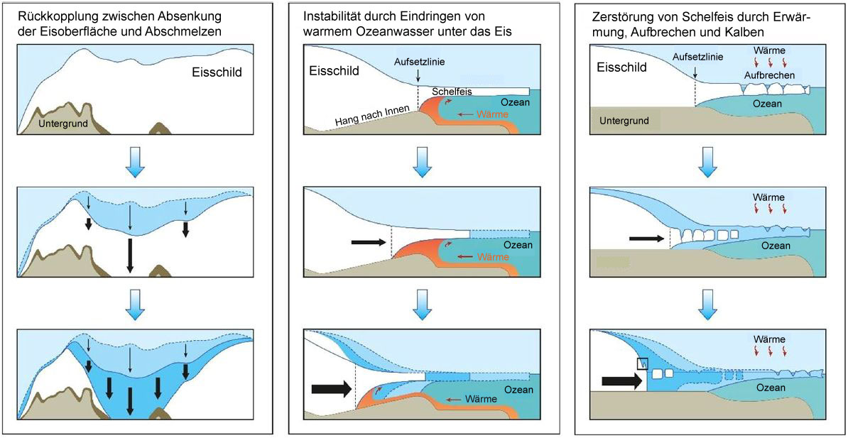 | 12:28, 14. Dez. 2025 | FeedbackProzesse Antarktis.jpg (Datei) | 119 KB | Dieter Kasang (Diskussion | Beiträge) | == Beschreibung == Feedback-Prozesse, die zu einem schnellen Rückzug des Eisschilds führen können: (1) Absenkung der Oberfläche und verstärktes Abschmelzen, (2) Instabilität mariner Ränder durch Eindringen von Meerwasser und Rückzug der Grundlinie, (3) Kalben an hohen Eiskliffs. ==Lizenzhinweis== {| style="border:1px solid #8888aa; background-color:#f7f8ff;padding:5px;font-size:95%;" | Quelle: Stokes, C.R., Bamber, J.L., Dutton, A. et al. (2025): Warming of +1.5 °C is too high for polar ice she… | 1 | |