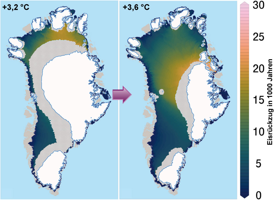 | 15:35, 16. Dez. 2025 | GrIS-Eisverlust-3,6-°C.jpg (Datei) | 119 KB | Dieter Kasang (Diskussion | Beiträge) | == Beschreibung == Eisrückzug auf Grönland bei einer globalen Erwärmung von 3,2 °C auf 3,4 °C gegenüber vorindustriell. Die Geschwindigkeit des Eisrückzugs wird farblich angezeigt. Weiß markiert das verbleibende Eis, grau Schwankungen durch die Anhebung der Erdkruste. ==Lizenzhinweis== {| style="border:1px solid #8888aa; background-color:#f7f8ff;padding:5px;font-size:95%;" | Quelle: Petrini, M., M.D.W. Scherrenberg, L. Muntjewerf (2025): A topographically controlled tipping point for complete G… | 1 | |