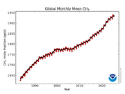 08:25, 13. Okt. 2025 Ch4-trend 1983-aktuell.png (Datei) 58 KB Dieter Kasang (Diskussion | Beiträge) == Beschreibung == Globale monatliche Methan-Konzentration 1983-2025 ==Lizenzhinweis== {| style="border:1px solid #8888aa; background-color:#f7f8ff;padding:5px;font-size:95%;" | Quelle: Earth System Research Laboratory (NOAA): Trends in Atmospheric Methane, https://gml.noaa.gov/ccgg/trends_ch4/<br> Lizenz: public domain |} 1