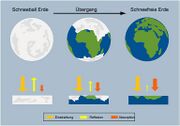 10:59, 15. Nov. 2025 Snowball-snowfree-earth-dt.jpg (Datei) 52 KB Dieter Kasang (Diskussion | Beiträge) == Beschreibung == Eine vollständig mit Eis bedeckte Erde hat eine hohe Albedo, sodass das Sonnenlicht größtenteils reflektiert würde und die Erde kaum erwärmen würde. Eine eisfreie Erde hat eine sehr niedrige Albedo, absorbiert einen großen Teil der Sonnenstrahlung und wird stark erwärmt. == Lizenzhinweis == {| style="border:1px solid #8888aa; background-color:#f7f8ff;padding:5px;font-size:95%;" |Quelle: Esters, L., P. Wirtz, S. Brückner et al. (2023): [https://kids.frontiersin.org/articles/10… 1
