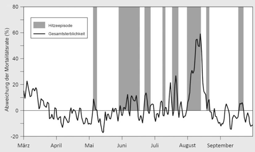 Hitzewellen im Jahr 2003 in Baden-Württemberg (grau) und Abweichungen der täglichen Mortalitätsraten zwischen März und September vom Erwartungswert in %. == Lizenzhinweis == {| style="border:1px solid #8888aa; background-color:#f7f8ff;padding:5px;f…