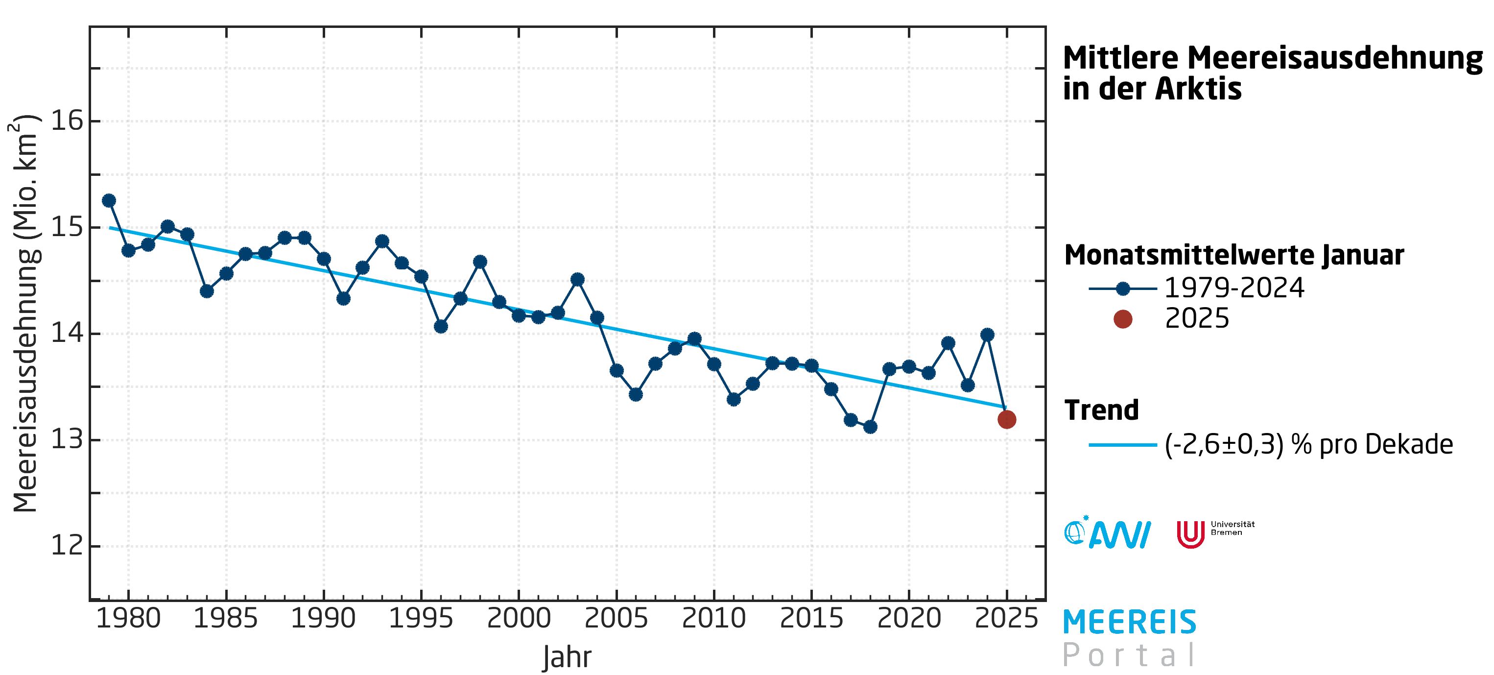 Quelle: Meereisportal.de (2020): Monatsmittelwerte der Meereisausdehnung: Arktis