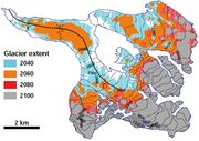 17:39, 21. Jun. 2017 Gornergletscher2100.jpg (Datei) 245 KB Dieter Kasang (Diskussion | Beiträge) Veränderung der Gletscherfläche (oben) und des kumulierten Eisvolumens aller Projektionen der Gletscherausdehnung des Gornergletschers in der südwestlichen Schweiz nach dem Szenario RCP6.0 bis 2100 == Lizenzhinweis == {| style="border:1px solid #888… 1