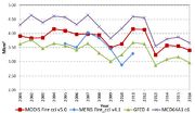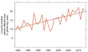 | 16:59, 31. Okt. 2018 | Rain-free days1979-2013.jpg (Datei) | 113 KB | Dieter Kasang (Diskussion | Beiträge) | Änderung der Anzahl der Tage mit sehr geringem Niederschlag (<1mm/Tag) pro Jahr 1996-2013 im Vergleich zu 1979-1996. NB (grau): Gebiete mit geringer oder fehlender Vegetation. NC (gelb): Gebiete mit geringer bis keiner Änderung. == Lizenzhinweis ==… | 1 | |
