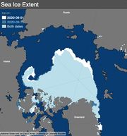 | 13:36, 21. Sep. 2020 | Sea-ice-extent sept.2020.jpg (Datei) | 56 KB | Meereisausdehnung am 1. (weiß) und 15.9.2020 (blau) ==Lizenzhinweis== {| style="border:1px solid #8888aa; background-color:#f7f8ff;padding:5px;font-size:95%;" | Quelle: NASA National Snow & Ice Data Center (2020): Arctic Sea Ice News & Analysis, http… | 1 | |