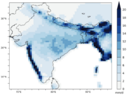 | 16:26, 19. Sep. 2022 | Indian Monsoon prec 1985-2015.png (Datei) | 178 KB | Dieter Kasang (Diskussion | Beiträge) | == Beschreibung == Räumliche Verteilung der Niederschläge während des Indischen Sommermonsuns 1985-2015 in mm/Tag == Lizenzhinweis == {| style="border:1px solid #8888aa; background-color:#f7f8ff;padding:5px;font-size:95%;" |Quelle: Katzenberger, A., Schewe, J., Pongratz, J., and Levermann, A. (2021): Robust increase of Indian monsoon rainfall and its variability under future warming in CMIP6 models, Earth Syst. Dynam., 12, 367–386, https://doi.org/10.5194/esd-12-367-2021<br> Lizenz: CC BY https… | 1 | |