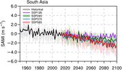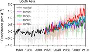| 16:37, 19. Sep. 2022 | S-Asia wet days SSP5-8.5.jpg (Datei) | 53 KB | Dieter Kasang (Diskussion | Beiträge) | == Beschreibung == Änderung der Anzahl der Tage mit Niederschlägen von >1 mm („feuchte Tage“) während des Sommer-Monsuns zwischen 1965-2015 und 2050-2100 == Lizenzhinweis == {| style="border:1px solid #8888aa; background-color:#f7f8ff;padding:5px;font-size:95%;" |Quelle: Katzenberger, A., Levermann, A., Schewe, J., & Pongratz, J. (2022): Intensification of very wet monsoon seasons in India under global warming. Geophysical Research Letters, 49, e2022GL098856. https://doi.org/10.1029/2022GL09885… | 1 | |