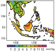 | 17:11, 26. Mai 2023 | Prec-SE-Asia-annual.jpg (Datei) | 225 KB | Dieter Kasang (Diskussion | Beiträge) | == Beschreibung == Jährlicher Niederschlag in Südostasien in mm/Tag ==Lizenzhinweis== {| style="border:1px solid #8888aa; background-color:#f7f8ff;padding:5px;font-size:95%;" | Quelle: Ratna, S.B., J.V. Ratnam, S.K. Behera, F.T. Tangang, and T. Yamagata, 2017: Validation of the WRF regional climate model over the subregions of Southeast Asia: climatology and interannual variability. Climate Research, 71(3), 263–280, doi:10.3354/cr01445<br> Lizenz: [http://creativecommons.org/licenses/by/4.0/ CC… | 1 | |