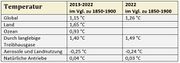 | 20:08, 26. Jun. 2023 | Temperatur 2022.jpg (Datei) | 27 KB | Dieter Kasang (Diskussion | Beiträge) | == Beschreibung == Die globale Mitteltemperatur 2013-2022 und 2022 im Vergleich zur vorindustriellen Zeit 1850-1900 == Lizenzhinweis == {| style="border:1px solid #8888aa; background-color:#f7f8ff;padding:5px;font-size:95%;" | Quelle: Forster, P. M., C.J. Smith, T. Walsh et al. (2023): Indicators of Global Climate Change 2022: Annual update of large-scale indicators of the state of the climate system and the human influence, Earth System Science Data, doi.org/10.5194/essd-2023-166<br> Lizenz… | 1 | |
