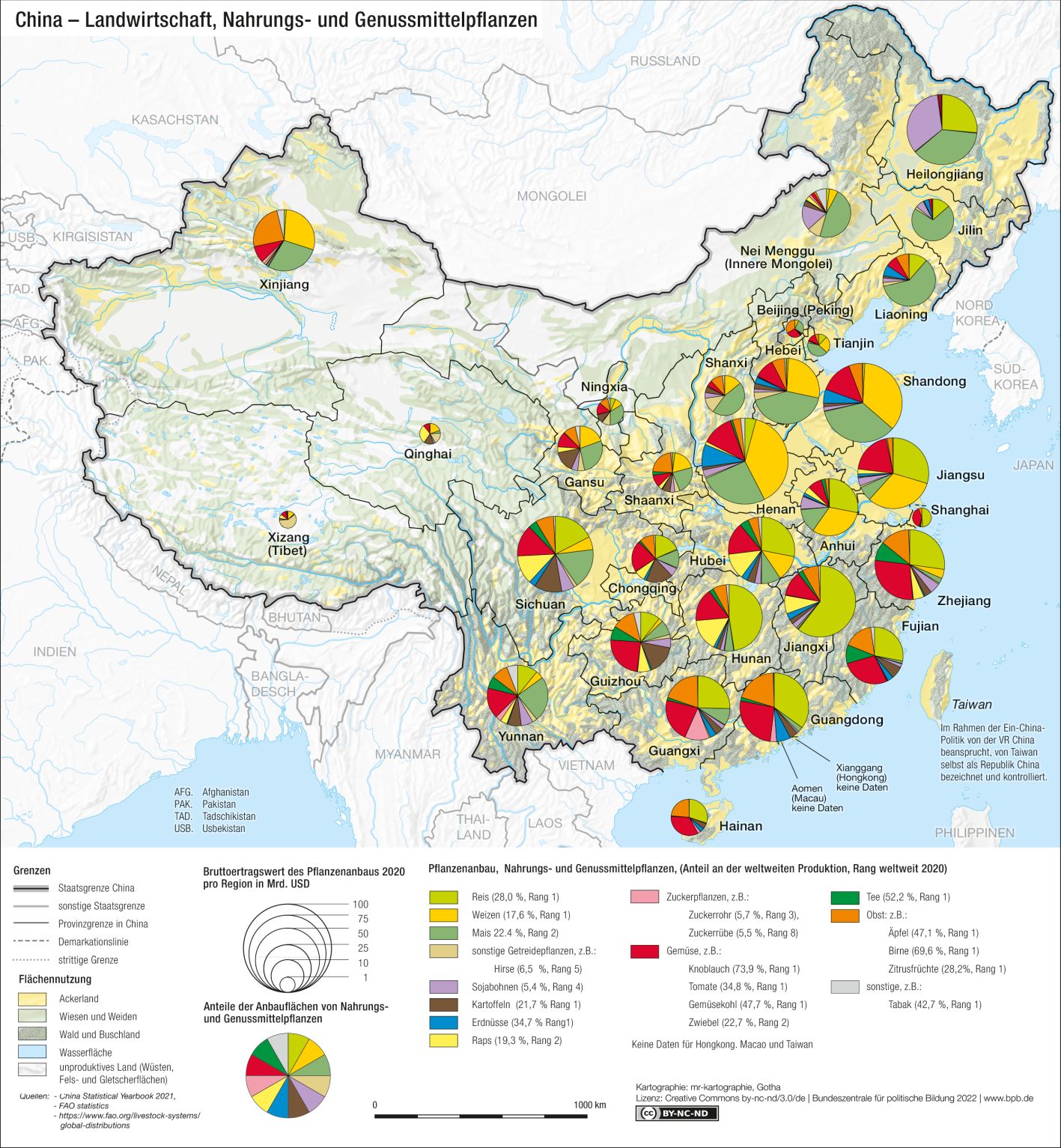 | 09:34, 2. Jun. 2025 | China-Landwirtschaft-Pflanzen.jpg (Datei) | 403 KB | Dieter Kasang (Diskussion | Beiträge) | == Beschreibung == Wichtige Anbaupflanzen in China mit Ertrag, Flächenanteil und Anteil an der weltweiten Produktion. == Lizenzhinweis == {| style="border:1px solid #8888aa; background-color:#f7f8ff;padding:5px;font-size:95%;" |Sternfeld, E., Bundeszentrale für politische Bildung (2022): Ernährungssicherung in China, https://www.bpb.de/themen/asien/china/513234/ernaehrungssicherung-in-china/ <br> Lizenz: CC BY-NC-ND |} | 1 | |