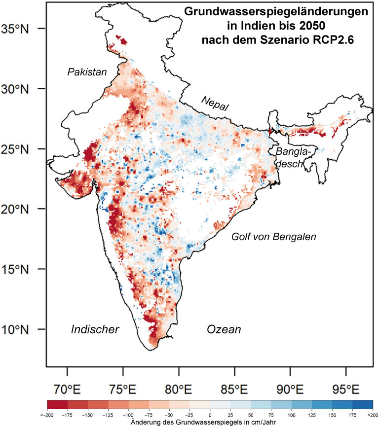 | 13:44, 24. Mai 2025 | Indien-Grundwasseränderung.jpg (Datei) | 120 KB | Dieter Kasang (Diskussion | Beiträge) | == Beschreibung == Änderung des Grundwasserspiegels in Indien bis 2050 nach dem Szenario RCP2.6 ==Lizenzhinweis== {| style="border:1px solid #8888aa; background-color:#f7f8ff;padding:5px;font-size:95%;" | Quelle: Bhattarai, N., D.B. Lobell, Balwinder-Singh et al. (2023): Warming temperatures exacerbate groundwater depletion rates in India.Sci.Advances 9, https://www.science.org/doi/10.1126/sciadv.adi1401 - übersetzt<br> Lizenz: CC BY-NC https://creativecommons.org/licenses/by-nc/4.0/ |} | 1 | |
