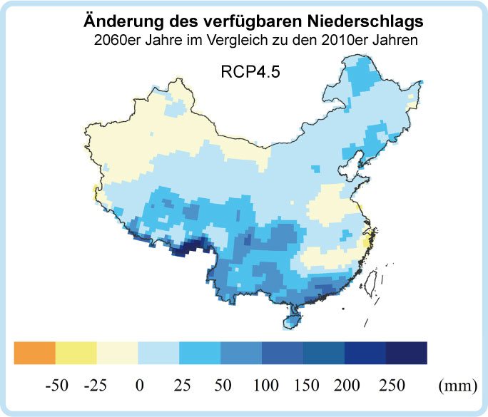 | 10:08, 2. Jun. 2025 | Niederschlag-2060er-RCP4.5.jpg (Datei) | 55 KB | Dieter Kasang (Diskussion | Beiträge) | == Beschreibung == Änderung des verfügbaren Niederschlags nach den Szenarien RCP4.5 bis 2060-2069 im Vergleich zu den 2010er Jahren. == Lizenzhinweis == {| style="border:1px solid #8888aa; background-color:#f7f8ff;padding:5px;font-size:95%;" |Quelle: Zhao. J., Z. Wang (2020): Future trends of water resources and influences on agriculture in China. PLoS ONE 15(4): e0231671. https://doi.org/10.1371/journal.pone.0231671<br> Lizenz: [http://creativecommons.org/licenses/by/4.0/ CC BY] |} | 1 | |