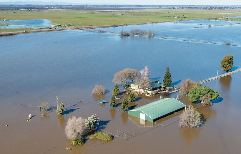 Hochwasser Kalifornien 2017: Überflutete Gebiete Januar 2017 um Twin Cities Rd., Foto: 13.1.2017, Florence Low