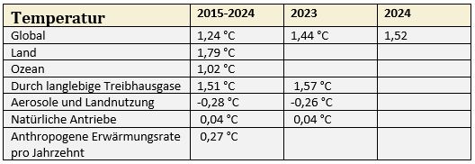 Quelle: Forster, P. M., C.J. Smith, T. Walsh et al. (2025): Indicators of Global Climate Change 2024: Annual update of large-scale indicators of the state of the climate system and the human influence, Earth System Science Data |