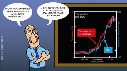 Die Behauptung ist nur teilweise zutreffend. Bei den Eiszeit-Zyklen beeinflussen sich CO2 und Temperatur wechselseitig. Der Übergang von einer Warm- zu einer Kaltzeit bzw. umgekehrt wird durch eine veränderte Sonneneinstrahlung angestoßen. Ursache dafür sind Schwankungen der Umlaufbahn der Erde um die Sonne. Die daraus resultierenden Temperaturunterschiede von 0,5 °C sind jedoch viel zu schwach, um den Unterschied von 4-5 °C zwischen den Warm- und Kaltzeiten zu erklären. Diese kommen erst dadurch zustande, dass beim Übergang zu einer Kaltzeit sich durch die geringere Sonneneinstrahlung auch der Ozean abkühlt. Dadurch nimmt der Ozean mehr CO2 aus der Atmosphäre auf, wodurch sich dann die Atmosphäre abkühlt. Diese Abkühlung bewirkt, dass sich größere Schnee- und Eisflächen ausbreiten. Dadurch wird mehr Sonnenstrahlung wieder in den Weltraum reflektiert und es wird noch kälter. Das bewirkt eine weitere Abkühlung des Ozeans, der noch mehr CO2 aufnehmen kann usw.