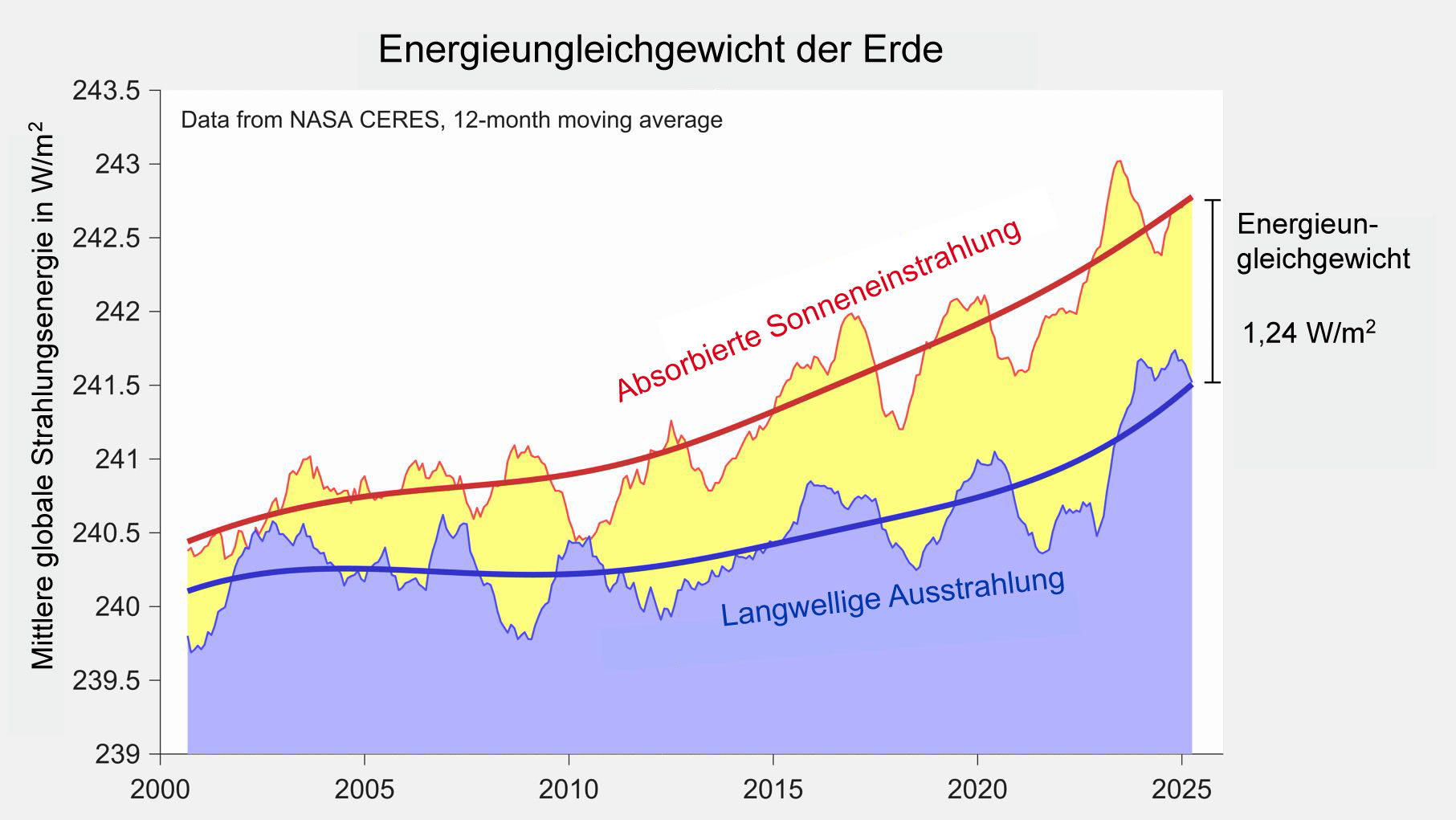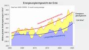 | 21:42, 22. Dez. 2025 | Energiebilanz-2006-2020.jpg (Datei) | 66 KB | == Beschreibung == Energiebilanz der Erde und die Aufteilung der zusätzlichen Erwärmung (Total Heat Gain) auf Atmosphäre (1%), Kryospäre (4 %), Land (6%) und Ozean (89%) für 2006-2020 (1971-2020 in Klammern) in Zeta Joule (1 ZJ = 1021 J) == Lizenzhinweis == {| style="border:1px solid #8888aa; background-color:#f7f8ff;padding:5px;font-size:95%;" | Quelle: von Schuckmann, K., A. Minière, F. Gues et al. (2023): Heat stored in the Earth system 1960–2020: where does the energy go? Earth Syst. Sci.… | 1 | |